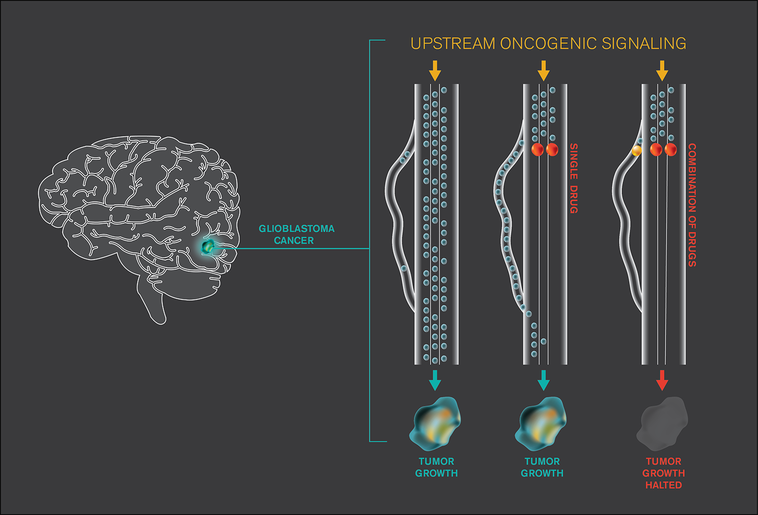 Cancer is capable of rapidly developing resistance to therapeutic drugs, rendering those drugs harmless—often before they have a chance to work. Now, researchers at Caltech and their colleagues have identified how at least one brain cancer, called glioblastoma multiforme (GBM), adapts so fast—and they show that by formulating the right combination of drugs, doctors could potentially overcome this resistance and stop a tumor in its tracks.