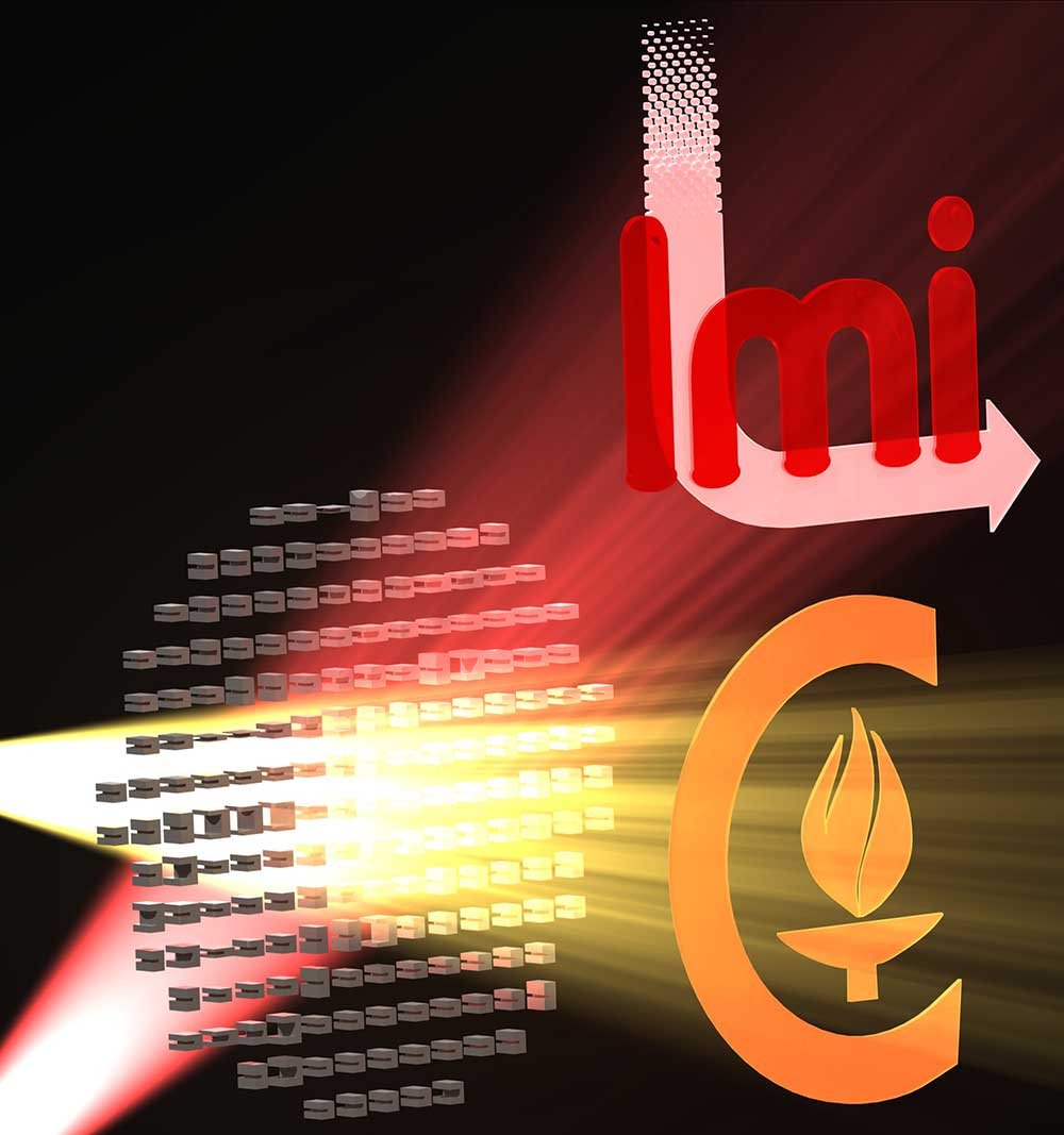 As a proof of concept, Faraon and Caltech graduate student Seyedeh Mahsa Kamali (MS '17) designed and built a surface that when illuminated with a laser straight on (thus, at 0 degrees) projects a hologram of the Caltech logo but when illuminated from an angle of 30 degrees projects a hologram of the logo of the Department of Energy-funded Light-Material Interactions in Energy Conversion Energy Frontier Research Center, of which Faraon is a principal investigator.